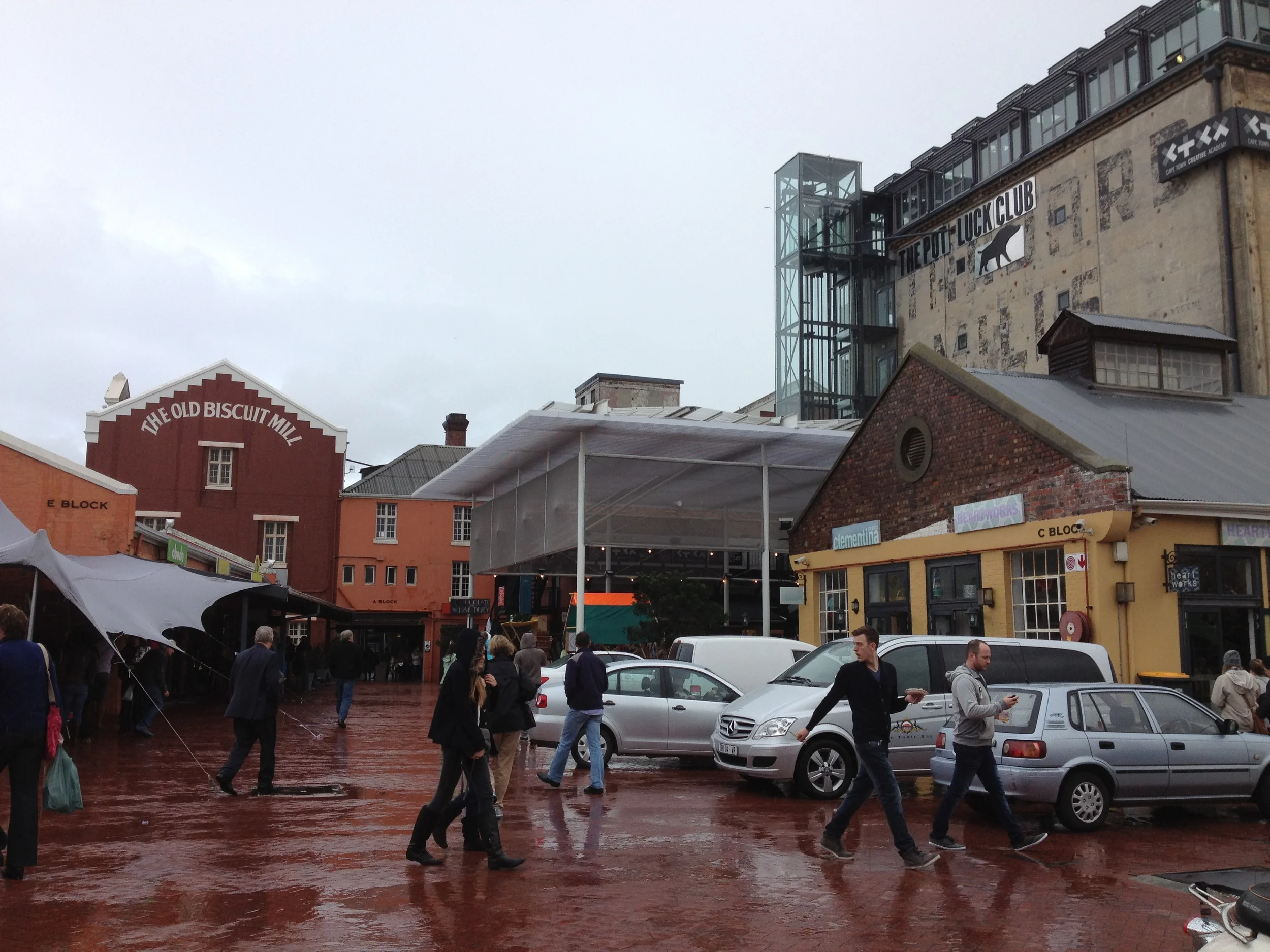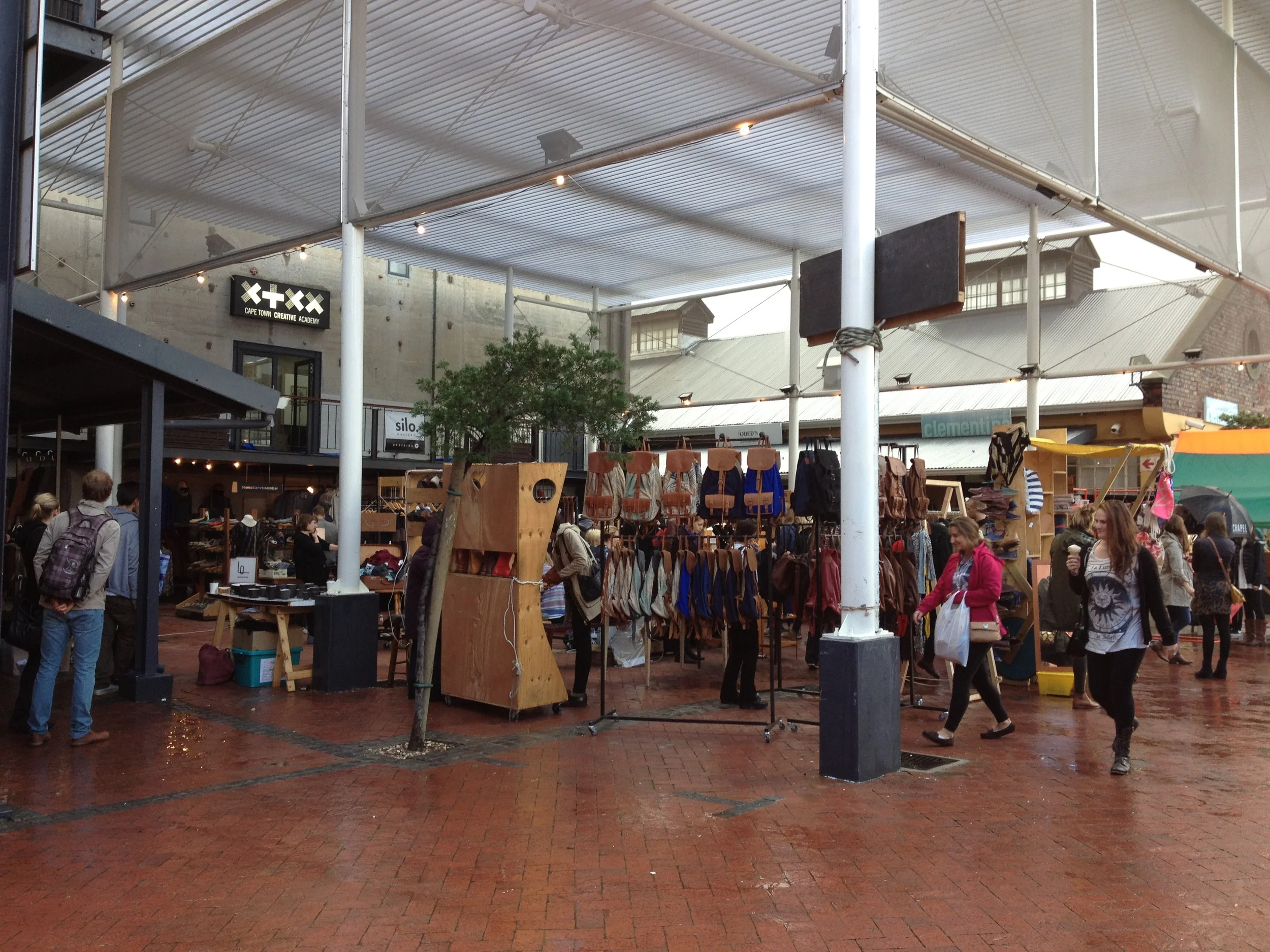 Saturday we were planning to take the train out of town, since the predicted weather was rain, rain rain. Fortunately when we woke up it wasn't pouring.. yet. We had some breakfast around 9:30, and decided to head off to Woodstock area where a large market, called the Old Biscuit Mill. Woodstock is a cool area of town, relatively a 30 minute walk from the city center where we live, and with the downpour we decided it would be best to cab. But the market was really nice, even with the rain, another fun open space with lots of clothes, shops, coffee and a market full of produce and beer.