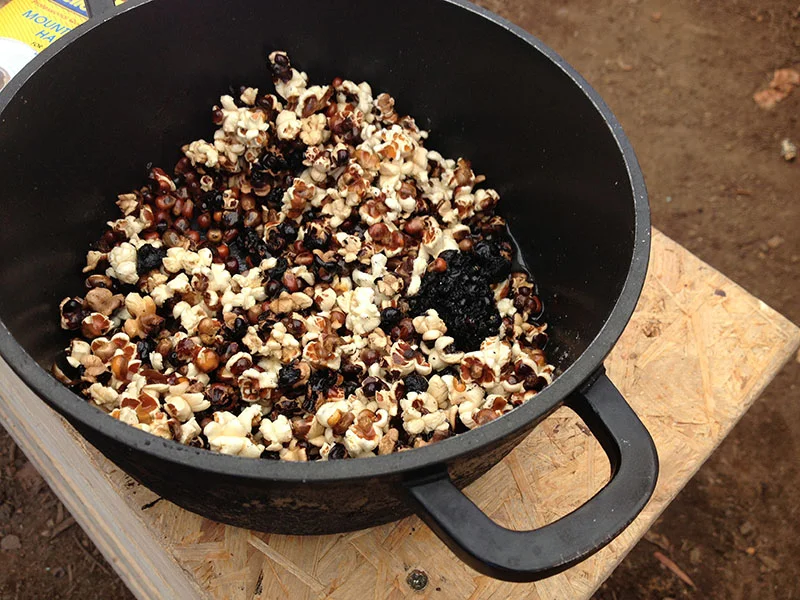 Solar cooker popcorn. A little burned but so good.