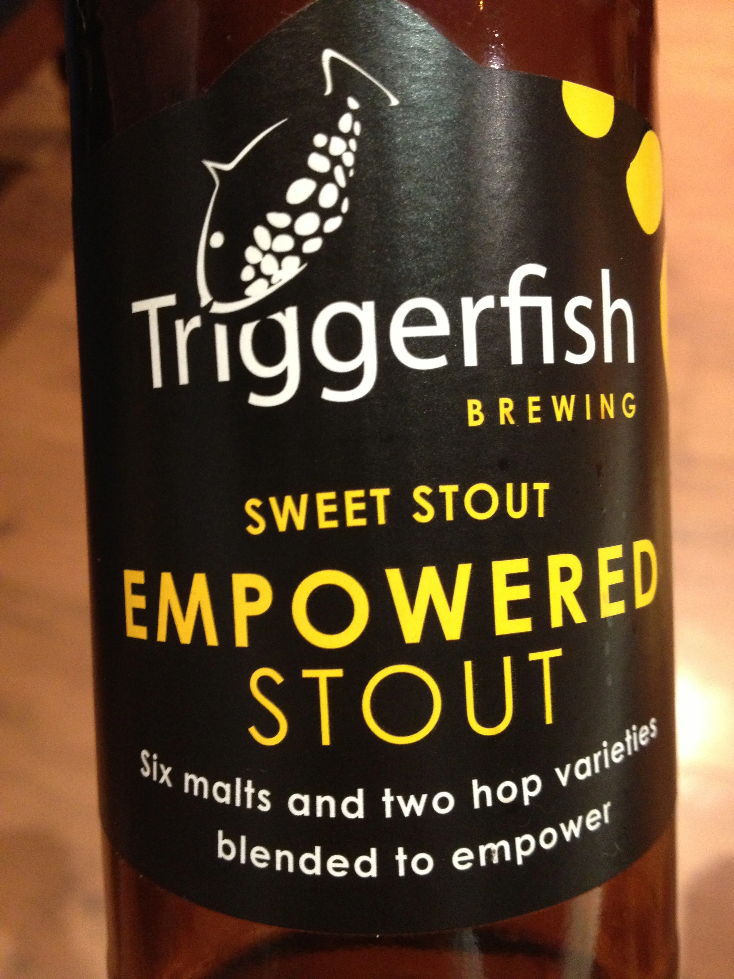 Today's beer: Triggerfish Sweet Stout, had to get something new, something dark. YUMM